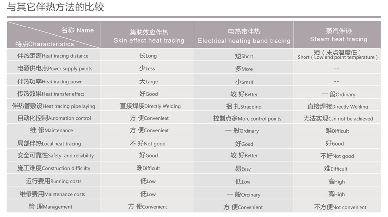 ◆ 適應(yīng)性強,應(yīng)用范圍廣適應(yīng)所有長、中、短距離金屬輸液管道的伴熱和加熱,適用于管道的不同敷設(shè)方式和任何場所,如:地下直埋、水下、地面架空;適用野外或礦場、工廠、易燃易爆場所。 ◆ 安全可靠、安裝維修方便伴熱管采用鋼管,強度大、密封嚴,有較好的保護作用。 ◆ 該系統(tǒng)獨特的發(fā)熱原理保證了優(yōu)異的加熱特性和加熱效率,從而節(jié)約能源。 ◆ 可以實現(xiàn)自動化控制控制、保護屏均可安裝在儀表室(值班室)內(nèi)。內(nèi)設(shè)短路、過流等常規(guī)保護,并可通過溫度傳感器實現(xiàn)溫度調(diào)節(jié)。實現(xiàn)自動化控制,做到無人值守。免維護。 ◆ 可以實現(xiàn)提前預(yù)制輸液管與伴熱管焊在一起,外面加上保溫層和保護殼,可在廠內(nèi)預(yù)制加工,既方便施工,又容易保證工程質(zhì)量。